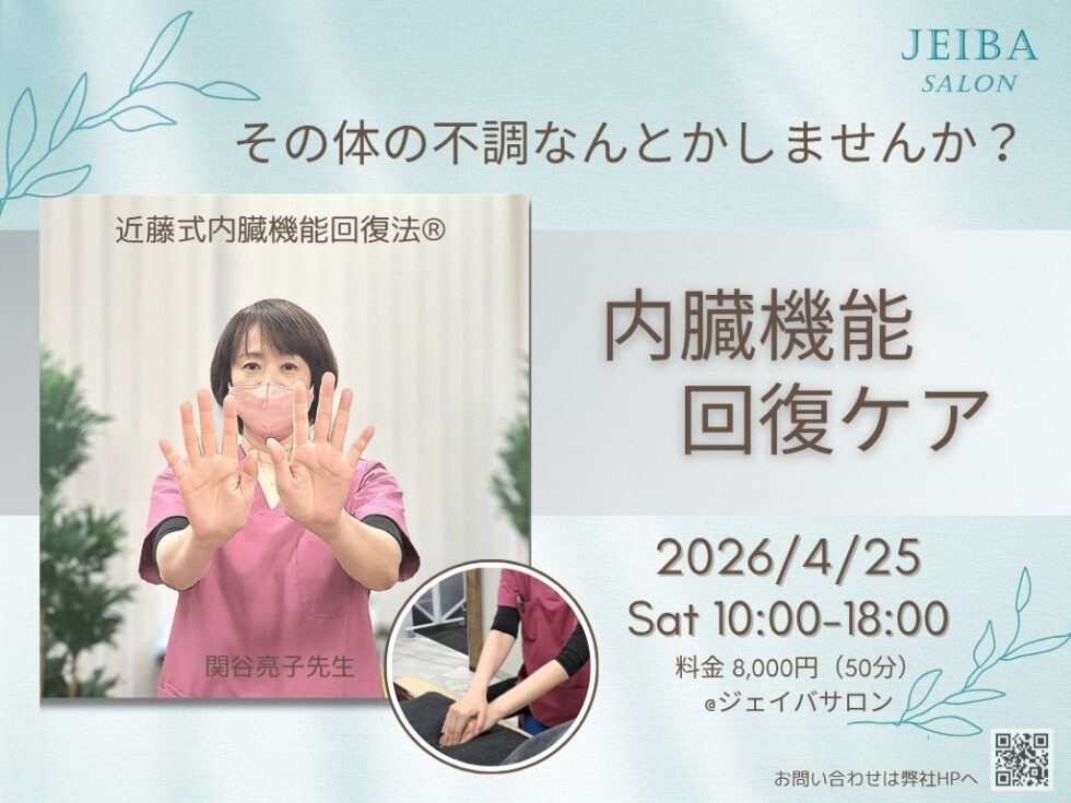 【人気】内臓機能回復ケア4月開催のお知らせ
